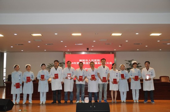 为了改进工作作风,精简会议,两会并一会,继纪念“5.12”国际护士节表彰庆祝大会后,我院又召开了2014年第一季度优质服务表彰大会,对评选出的12名“优质服务之星”和10个“优质服务示范科室”一并进行了颁奖。
