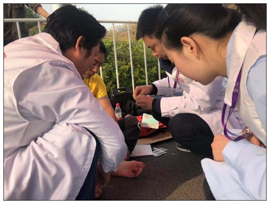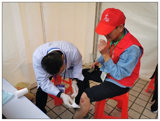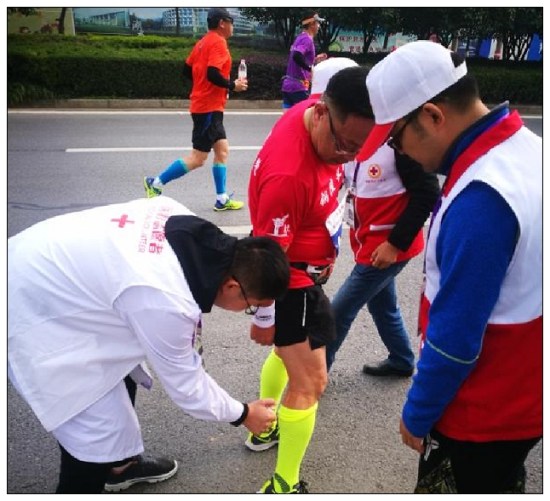 市人民医院承担全部11个医疗点和20辆医疗电瓶车中8910及医疗保障中心4个医疗点和16171819205辆流动医疗电瓶车的医疗保障任务。经过赛前的培训、演练等积极准备,医护人员于11246:30奔赴各医疗站点。到站点后,医护人员立刻投入工作状态,积极准备、严阵以待。8:30比赛正式开始后陆续有参赛者因突发扭伤、摔伤、骨折、抽筋、昏迷、气促等需要医疗救助,在3个小时的比赛时间里共实施医疗救助128次。参与保障的医护人员注意力始终保持高度集中,服从命令听指挥,密切配合,顾全大局,彰显了我院医护人员良好的精神风貌和严谨的工作作风。他们以专业的急救技能和热情的服务态度,获得赛事组委会的高度认可,圆满完成了此次马拉松比赛的医疗保障任务。