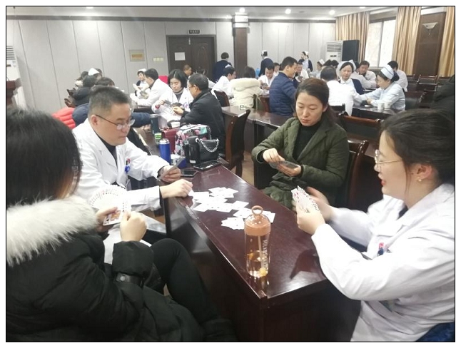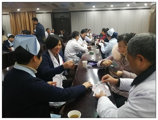 为丰富广大职工业余文化生活,按照院工会《关于开展市人民医院2020年职工迎春掼蛋活动的通知》,内科分会于1月3日上午组织的热身赛在器械科四楼会议室火热进行。