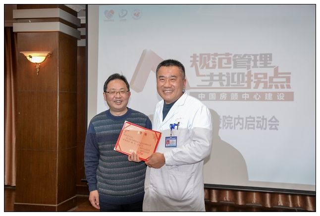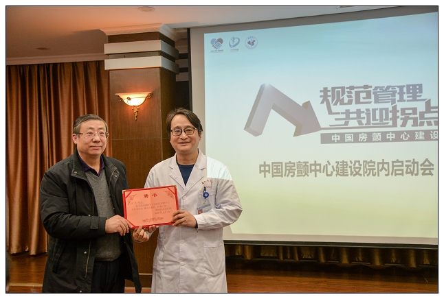 启动会上,徐健向我院授予“中国房颤中心建设单位”牌匾。