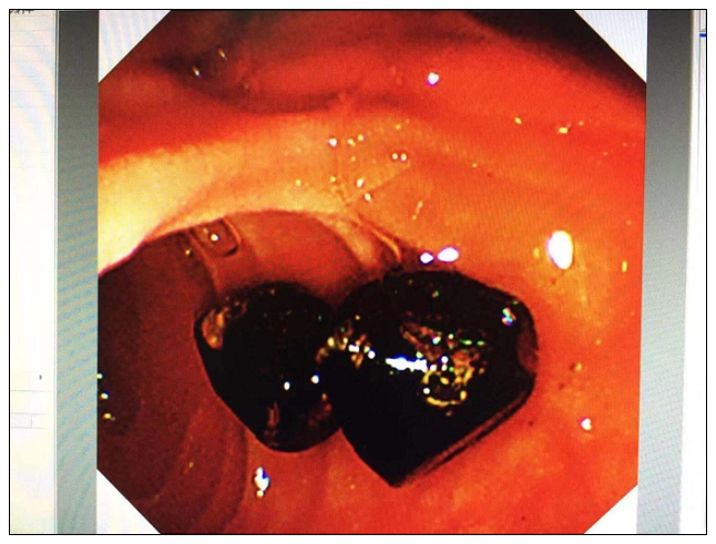 患者王某,79岁,因剑突下疼痛在外院反复治疗效果不佳。由于患者年龄大,既往有“高血压、冠心病、脑梗”等病史,同时有“心脏起搏器置入”及“胆囊手术”病史,都是传统手术的种种障碍。患者听家里亲戚说市人民医院有一种不用开刀也可以把石头取出来的办法,遂来我院就诊。针对该患者这一特殊情况,手术小组经过充分的术前准备、评估,顺利为患者取出了两枚1.2*1.0cm、1.0*1.0cm结石,解除患者多年的病痛,大幅提高患者生活质量。