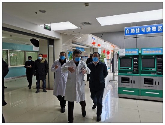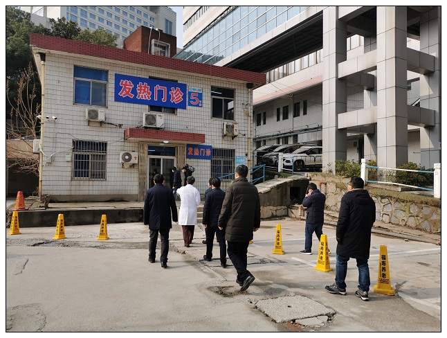丁纯书记走访了预检分诊、发热门诊,重症病区、医务人员休息区,详细了解了防控救治和医用物质储备情况,听取戴晏院长关于疫情防控工作汇报。通过视频通话与隔离病房的患者们、医务人员进行对话,看到患者情绪稳定,正积极接受治疗,安慰鼓励他们配合医务人员治疗,放松心态,争取早日治愈出院。并叮嘱一线医务人员要保重身体,注意做好个人防护。